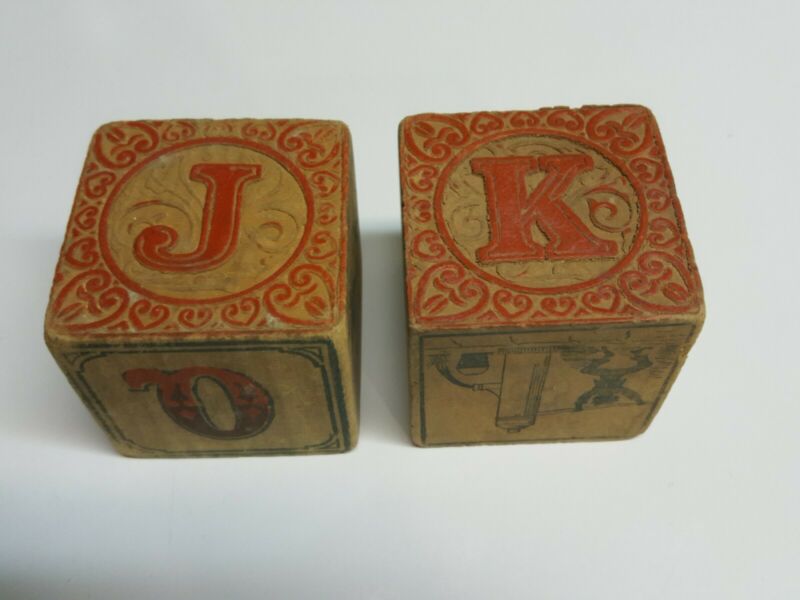 2 Antique Vintage Wooden Alphabet Blocks
