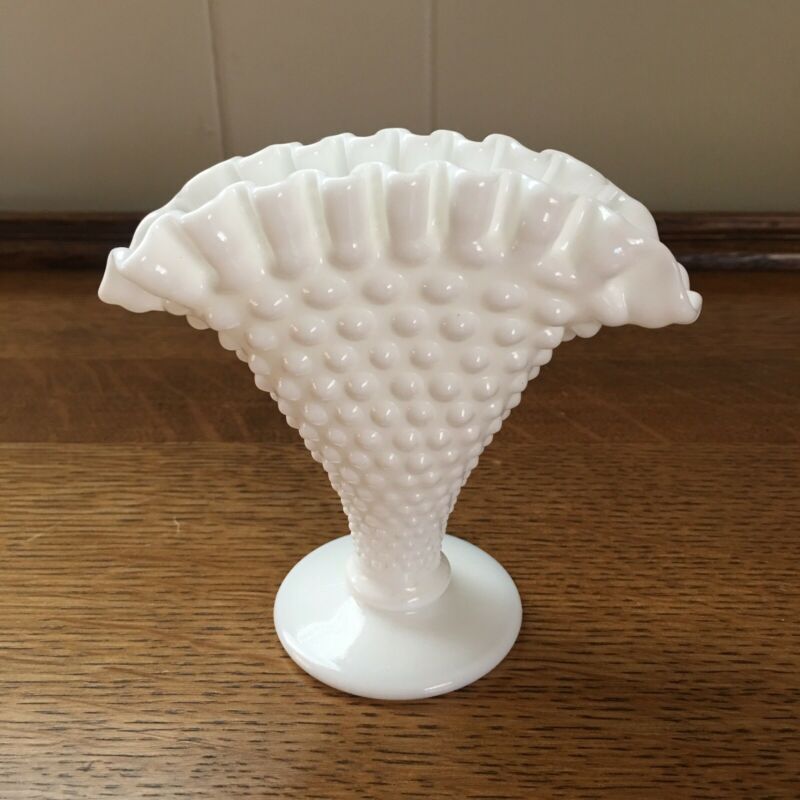 Title (ebay affiliate link): LOVELY Vintage Fenton Hobnail White Milk Glass Mini Fan Vase