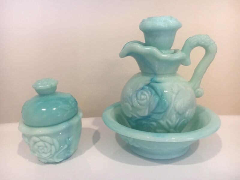 Title (ebay affiliate link): Vintage Avon jadeite Moonwind Milk Glass Mini Bowl and Pitcher Set