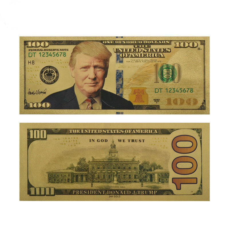 Title (ebay affiliate link): 10 X President Donald Trump Colorized $100 Dollar Bill Gold Foil Banknote US EN