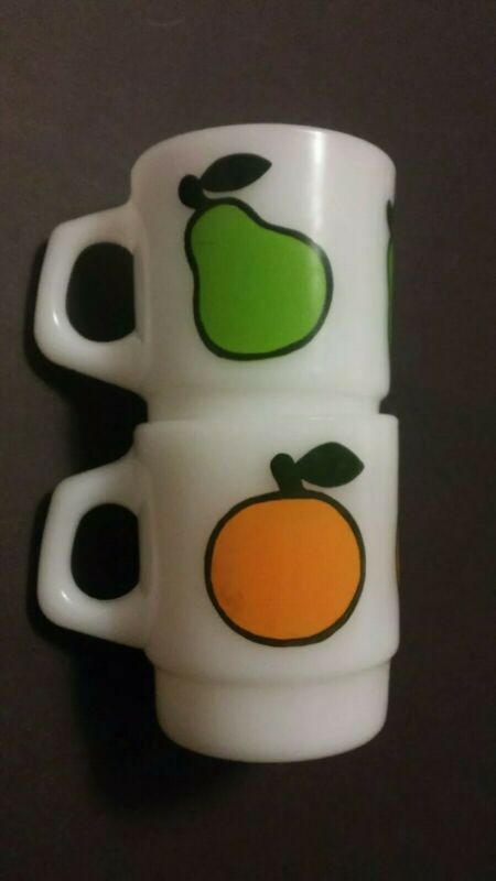 Title (ebay affiliate link): Vintage Anchor Hocking Fire King Orange & Pear Fruit Milk Glass Coffee Mugs USA