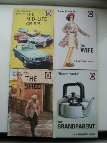 Title (ebay affiliate link): 4 MODERN EDITION ADULT LADYBIRD BOOKS - THE WIFE, SHED, GRANDPARENT AND MID-LIFE