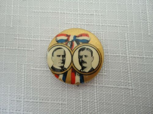 Title (ebay affiliate link): Antique William McKinley & Teddy Roosevelt Jugate Pin Pinback Button