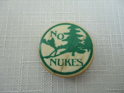 Title (ebay affiliate link): Vintage 1977 NO NUKES peace anti-war ecology Celluloid Pin Pinback Button