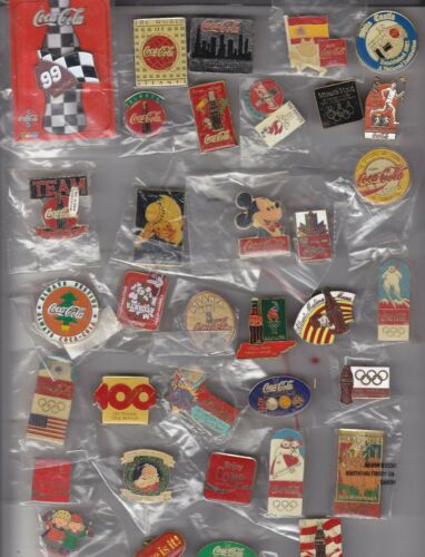 COCA-COLA HAT PINS, OLYMPICS, DISNEY, TCCCC, TAB, NASCAR, 35 DIFFERENT NICE LOT