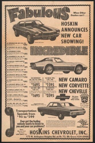 1970 Hoskins Chevrolet print ad Camaro Z28 Corvette Chevelle Elk Grove