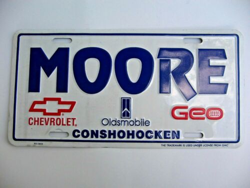 Vintage Chevrolet Geo Olds Dealer License Plate MOORE Conshohocken Pa. Embossed
