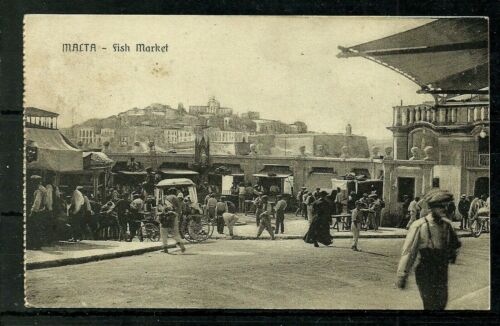 Title (ebay affiliate link): Postcard : Malta, the Fish Market in Valletta, posted OAS, "rec''d Oban Times"
