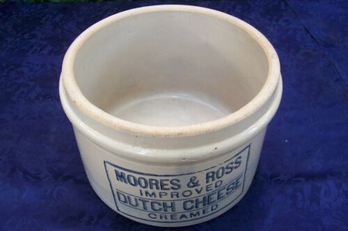 VINTAGE MOORE & ROSS DUTCH CHEESE CREAMED 1 GAL CROCK BLUE LABEL ADVERTISING