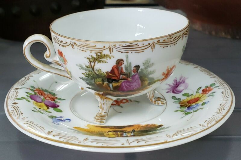 Title (ebay affiliate link): 1890''s German Carl Thieme Porcelain Gilded Footed Teaup and Saucer