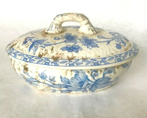 ANTIQUE ENGLISH PORCELAIN COVERED SOAP DISH