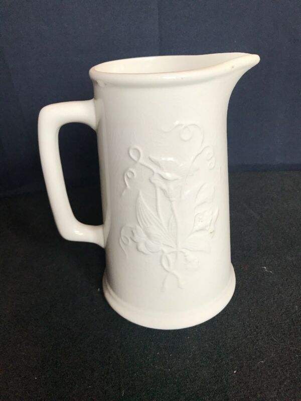 Antique Vtg John Edwards White Warranted Ironstone Floral Pitcher Vase Decor B17