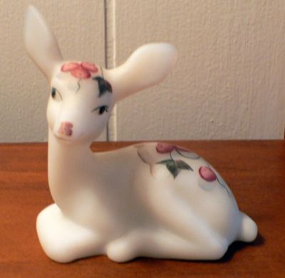 Fenton Satin Milk Glass Deer Handpainted & Signed Hart
