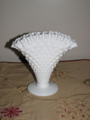 White Milk Glass Hobnail Fan Vase