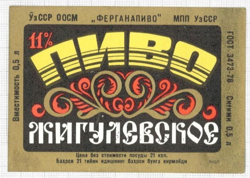 Title (ebay affiliate link): UZBEKISTAN,USSR Ferghana Brewery,Fergana Zhiguly - beer label C1791 132