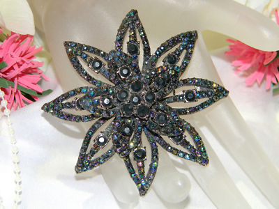 Vintage Retro Aurora Borealis & Black Milk Glass Brooch