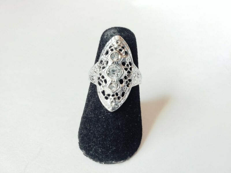 Title (ebay affiliate link): AUTHENTIC ART DECO ANTIQUE 925 STERLING SILVER WHITE STONE FILIGREE RING SIGNED