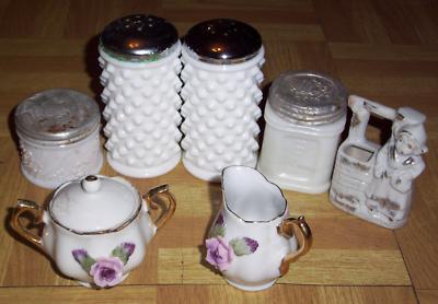 Salt & Pepper Shakers & Lotion Jars Milk Glass