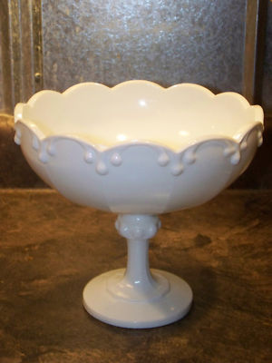 Indiana Glass Milk Glass Compote Drip Bead Large Piece
