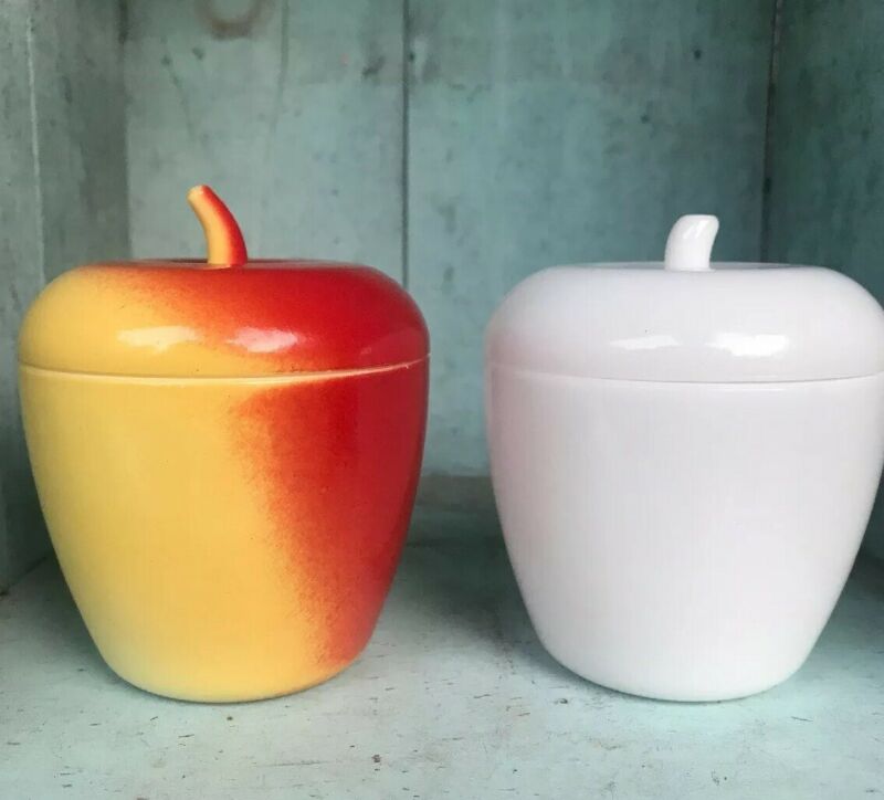 Title (ebay affiliate link): 2 VTG HAZEL ATLAS Milk Glass APPLE Lidded Jelly Jam Jar Pots