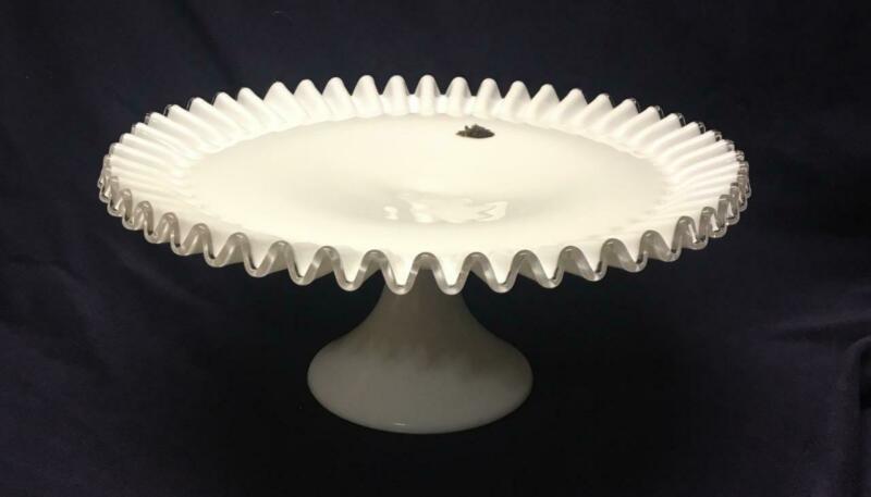 Title (ebay affiliate link): FENTON SILVER CREST WHITE MILK GLASS PEDESTAL CAKE STAND PLATE WITH ORG. LABEL