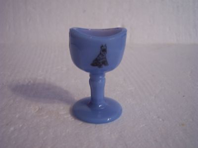 Blue Milk Glass Pedestal Eye Wash Cup Fluffy Black Dog