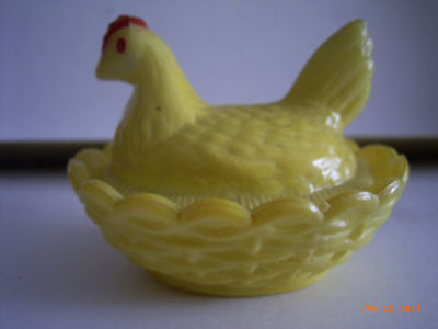 Hen Chicken on Nest Yellow Milk glass Open salt 2 1/2"