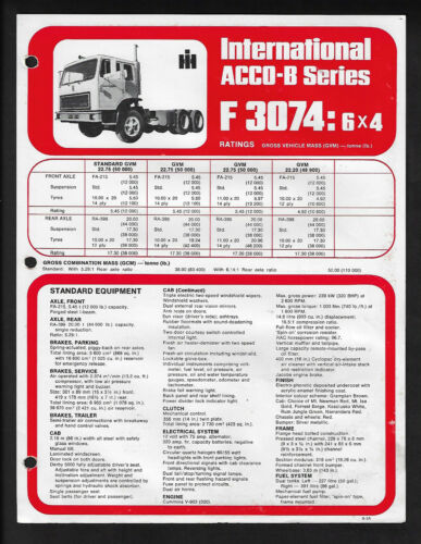 Title (ebay affiliate link): INTERNATIONAL ACCO-B SERIES F 3074: 6X4 SPECIFICATIONS BROCHURE A-126-F 1977