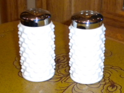 HOBNAIL WHITE MILK GLASS SALT AND PEPPER SHAKERS