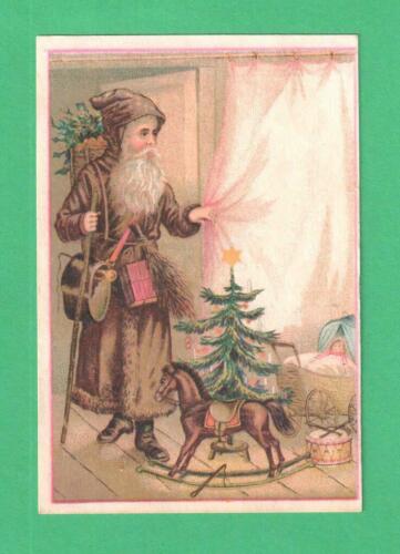 SCARCE ANTIQUE CHRISTMAS TRADE CARD GERMAN COFFEE SANTA CLAUS TOYS CURTAIN