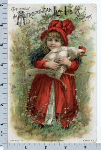 Title (ebay affiliate link): Victorian Trade Card - Metropolitan Life Insurance Company - Girl with Chicken
