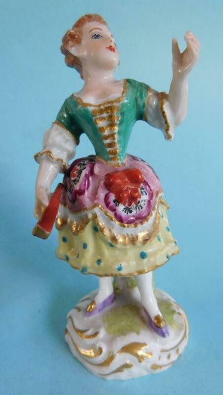 English Royal Crown Derby Antique Porcelain small Figurine Woman with Fan