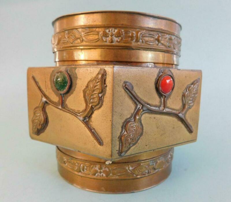 Title (ebay affiliate link): C1900s Chinese Brass Hexagonal Form Tea Caddy with applied Wired Enamel Fruits
