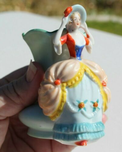 Vintage Porcelain Victorian Lady Planter Vase Figurine C1