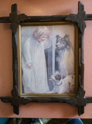 Antique Adirondack Black Forest Carved Leaf Frame with Glass