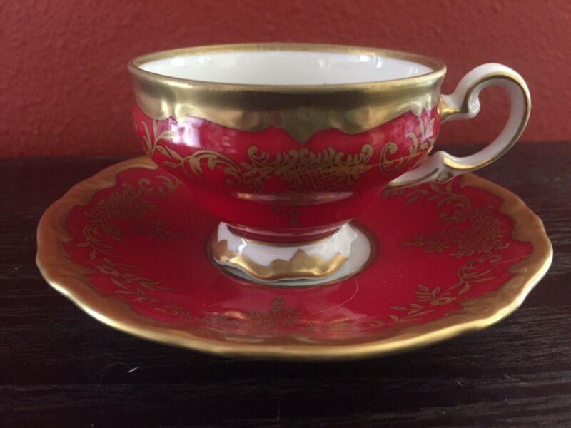 Weimar Katharina Demitasse Tea Cup And Saucer GDR Germany Chip Red & Gold