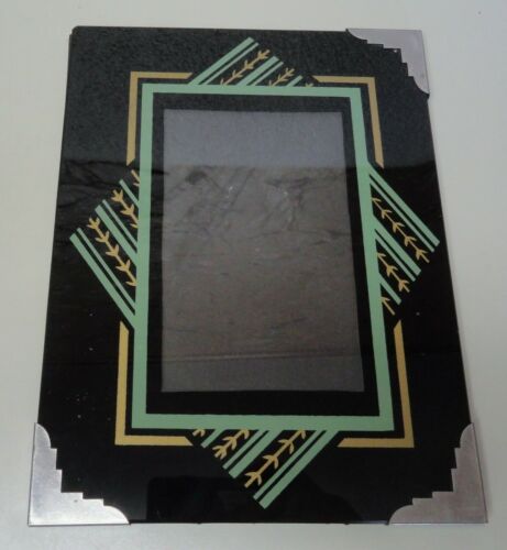 Art Deco Green / Black / Gold Reverse Painted Picture Frame 8" x 6"