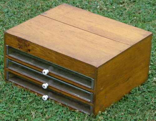 ANTIQUE 3 DRAWER OAK WOODEN WATCHMAKER CABINET STORAGE PARTS CABINET CHEST