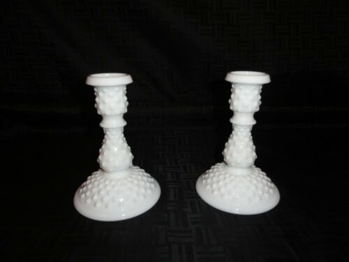 Title (ebay affiliate link): Vintage Fenton Milk glass Hobnail 6" Candle Stick Holder One Pair