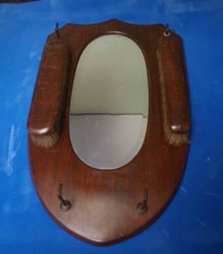 Title (ebay affiliate link): Beautiful Antique Vintage Wooden Hall Mirror Shield With Brush Hooks