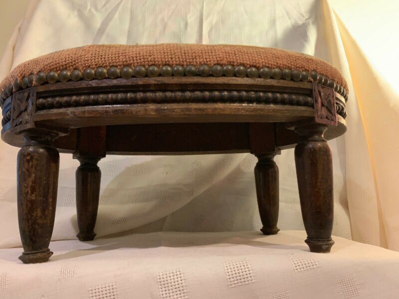 Title (ebay affiliate link): Antique Floral Needle Point BEADED Wooden Foot Stool 4 Legged BEST