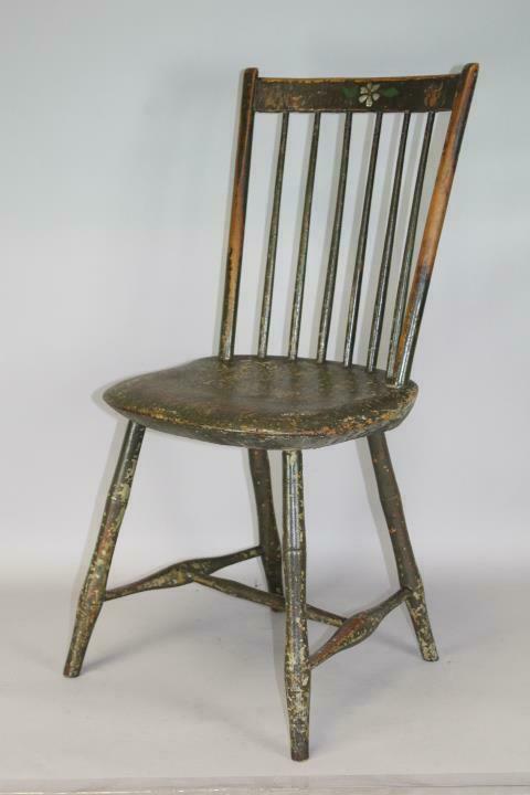 Title (ebay affiliate link): ONE OF A PAIR A 19TH C RI WINDSOR ROD BACK CHAIR IN GRUNGY OLD GREEN PAINT 2
