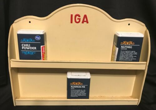 Title (ebay affiliate link): Vintage Antique 1940s IGA Foods Metal Spice Tin Rack Nce Oldie to Have!!!!