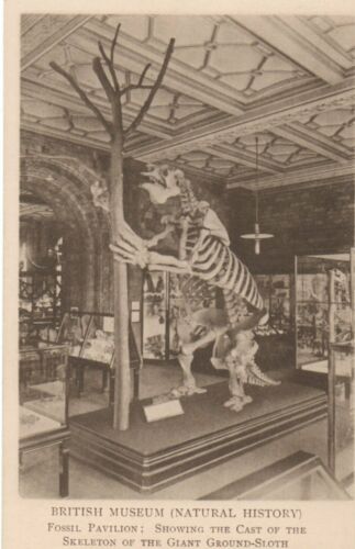VINTAGE BRITISH MUSEUM postcard: FOSSIL CAST OF SKELETON OF GIANT SLOTH A17