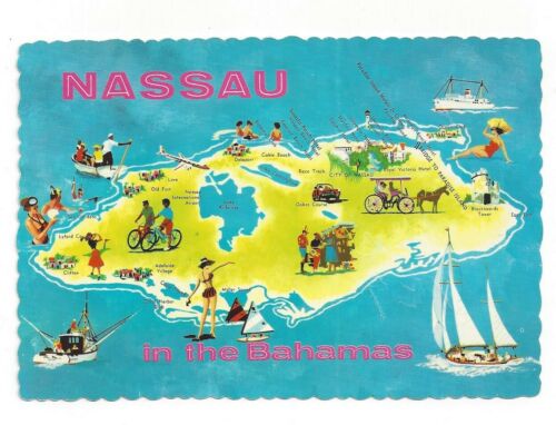 Title (ebay affiliate link): Postcard Nassau in the Bahamas Continental Card Map View QSL