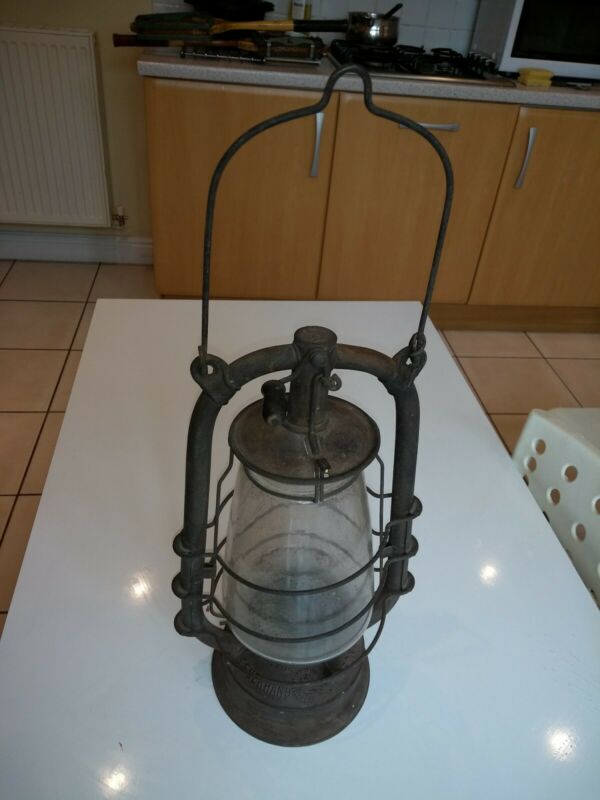 Rare German Military Feuerhand 323 Tubular RR Kerosene Lantern Light Lamp&Globe