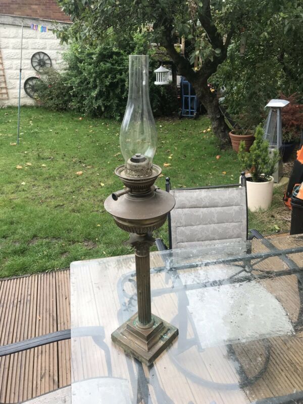 Title (ebay affiliate link): ANTIQUE VICTORIAN MESSENGERS 54CP ANNULAR BRASS CORINTHIAN COLUMN OIL LAMP