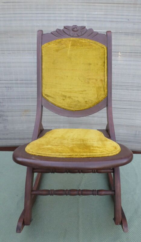 Title (ebay affiliate link): Antique dark Wood Folding gold Rocking Chair 33" tall, Excellent
