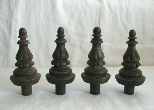 Vintage 4 WOOD FINIALS Salvage CARVED PRIMITIVE Ornate Antique Furniture Piece