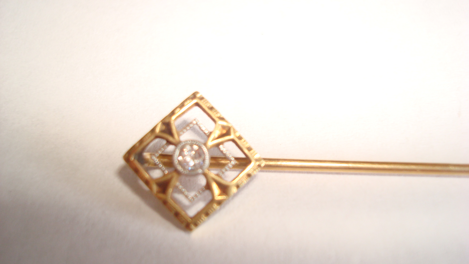 ANTIQUE VICTORIAN 14K GOLD STICKPIN W/DIAMOND